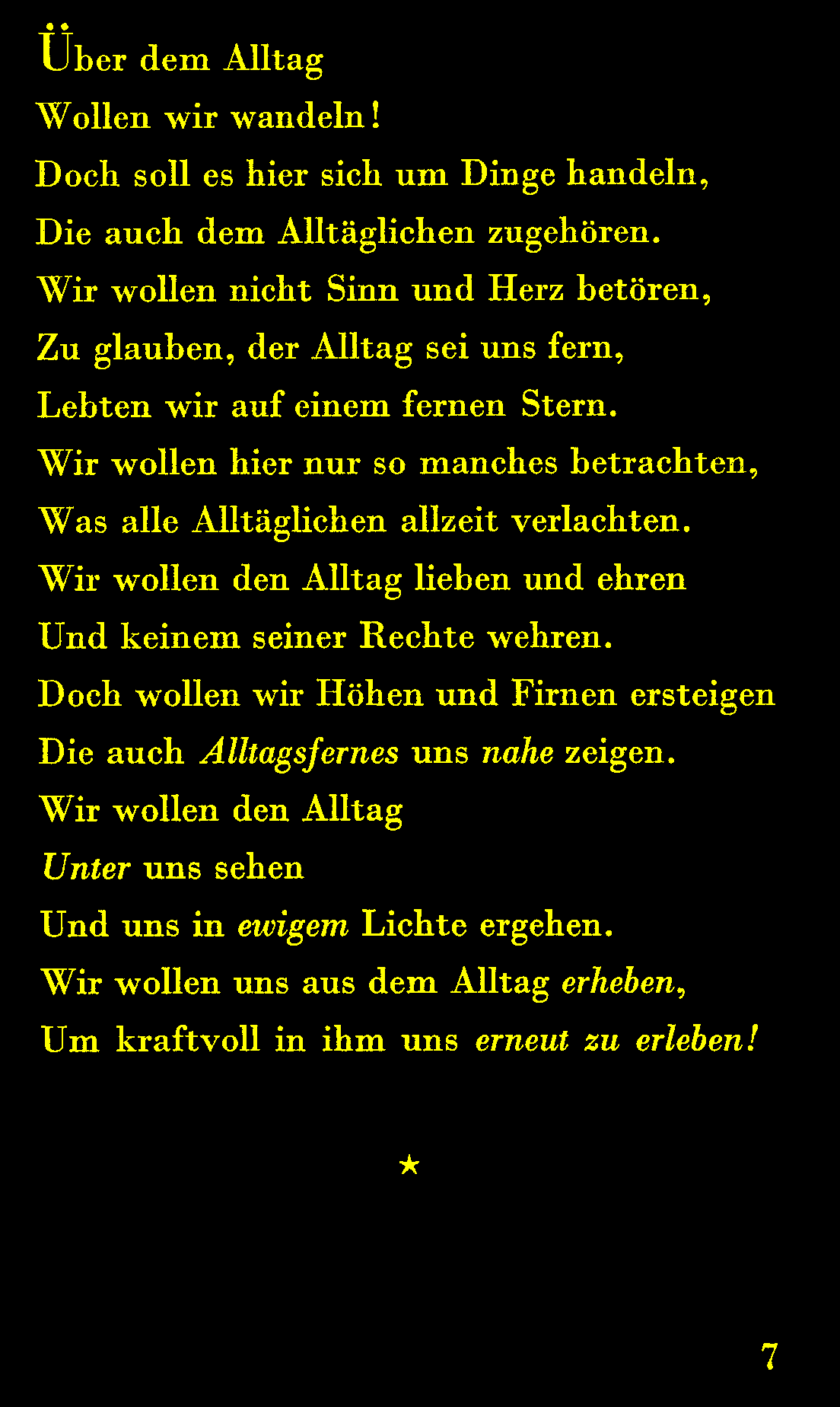Was alle Alltäglichen allzeit verlachten.