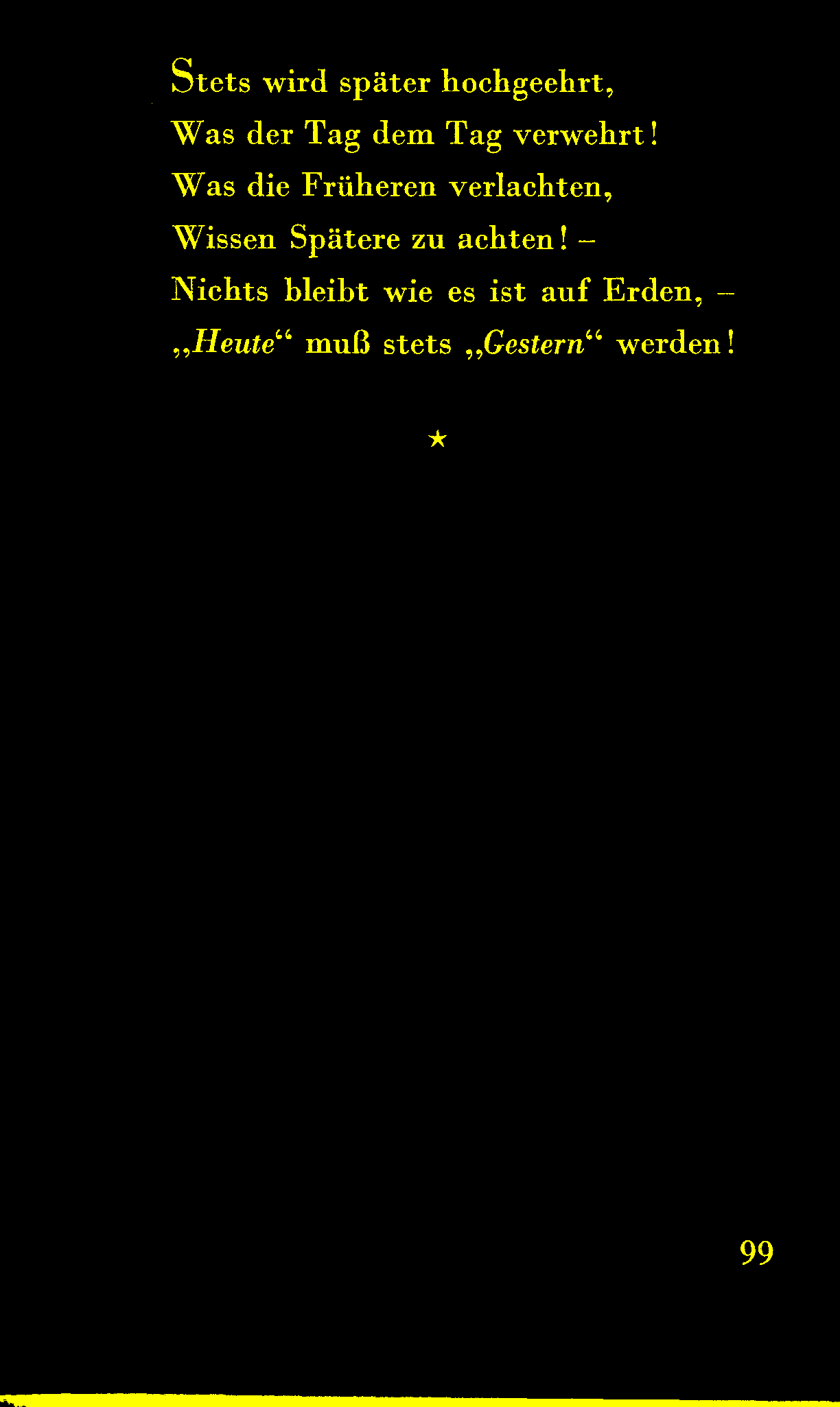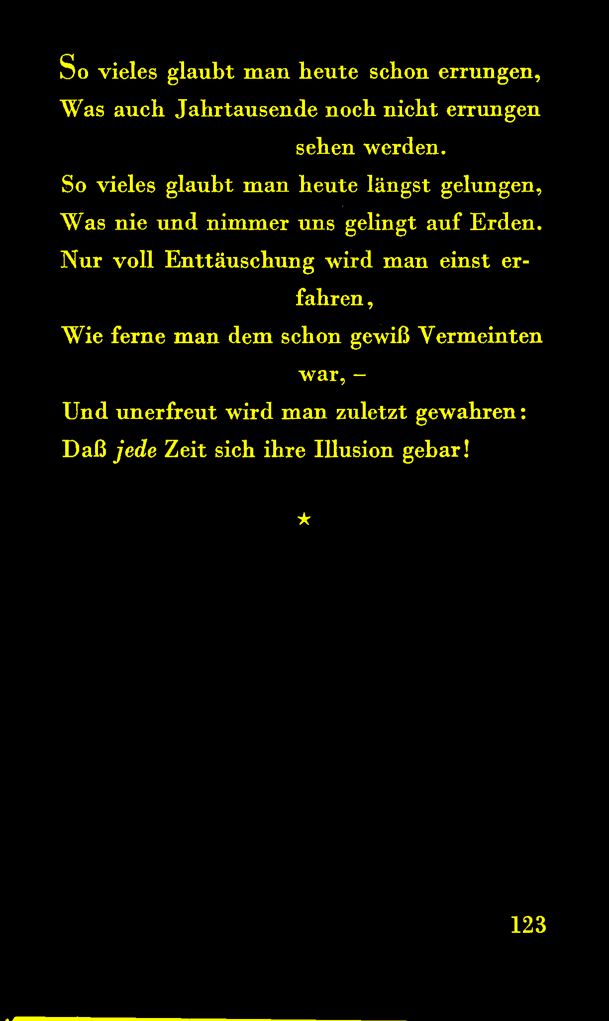 Daß jede Zeit sich ihre Illusion gebar!
