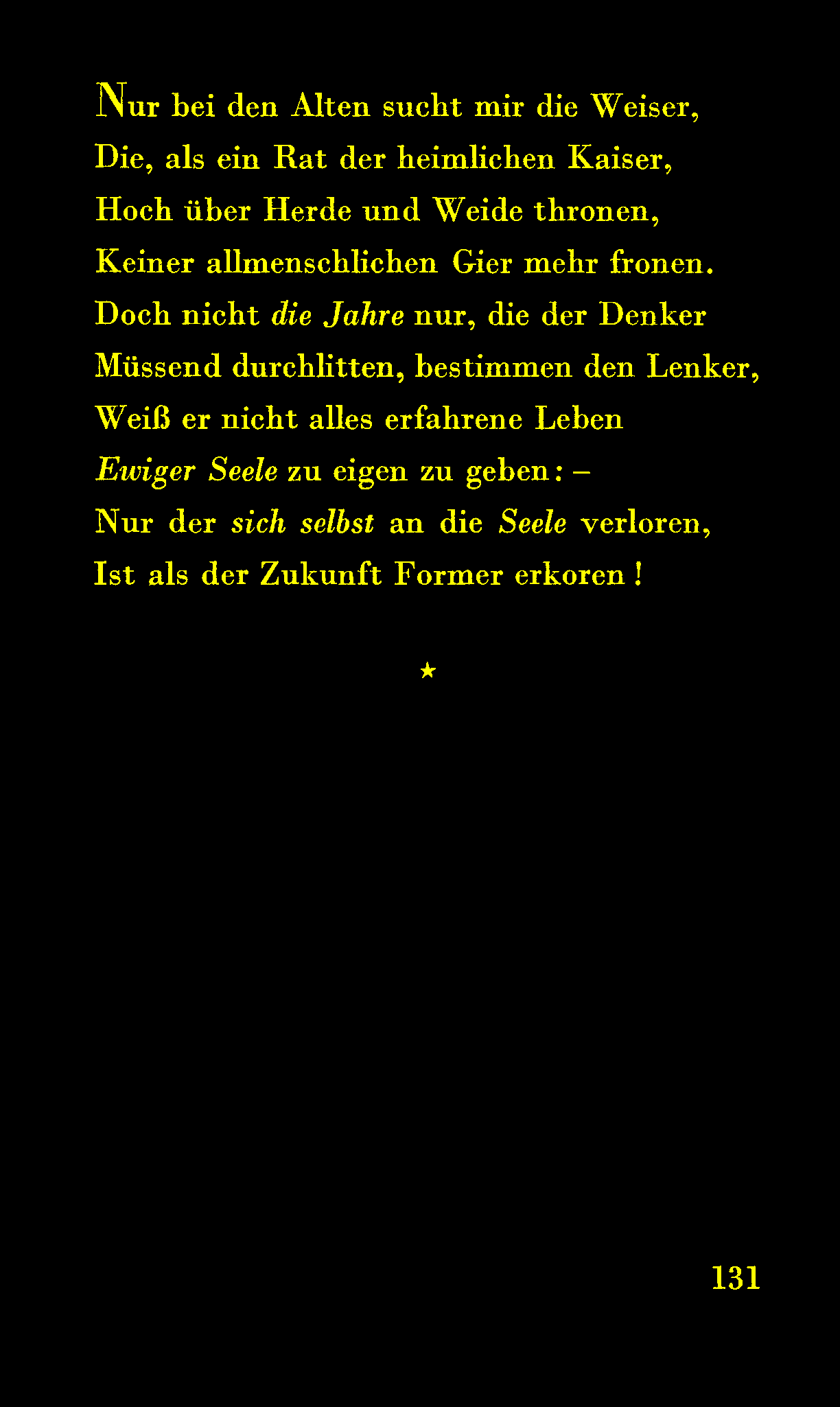 Nur der sich selbst an die Seele verloren,