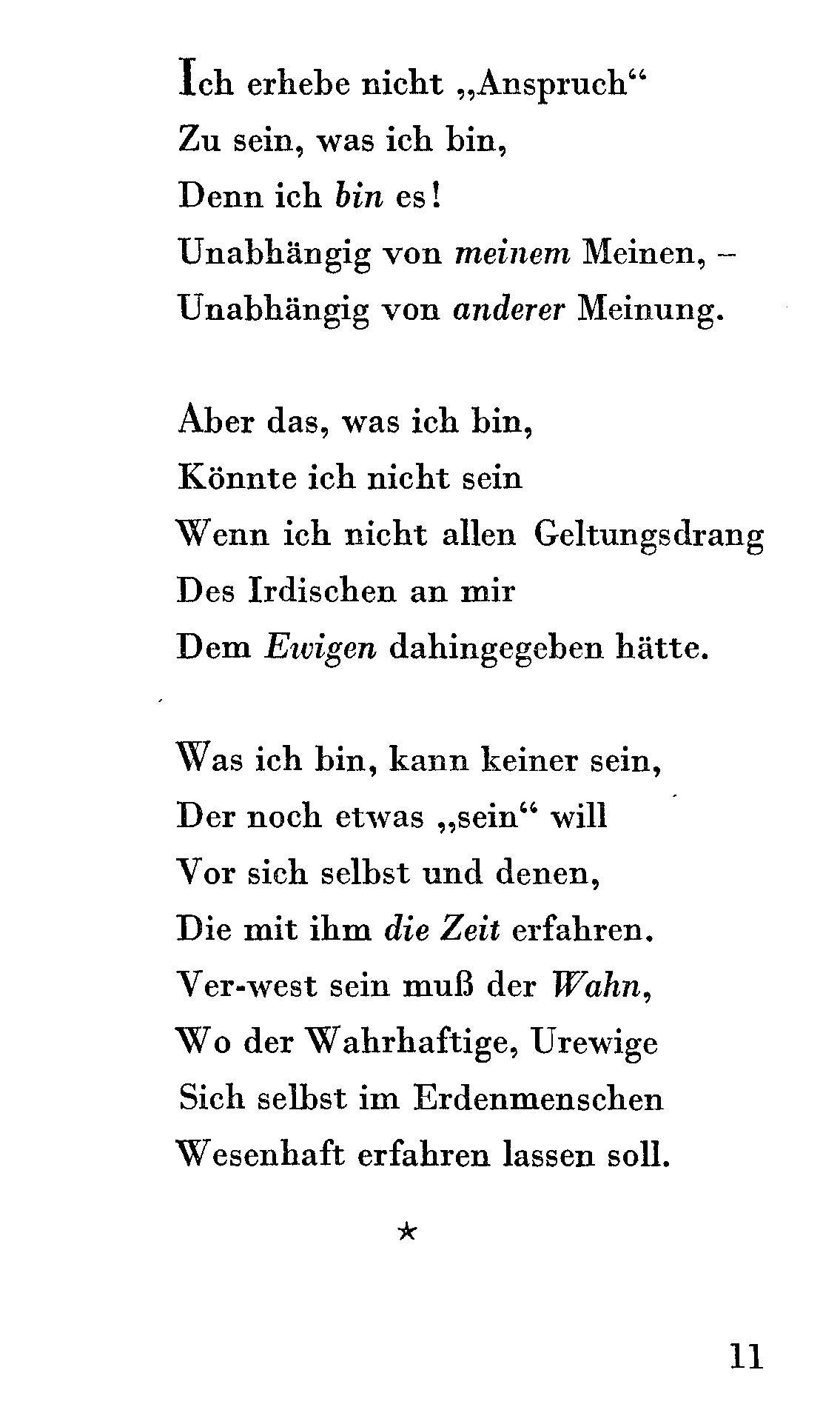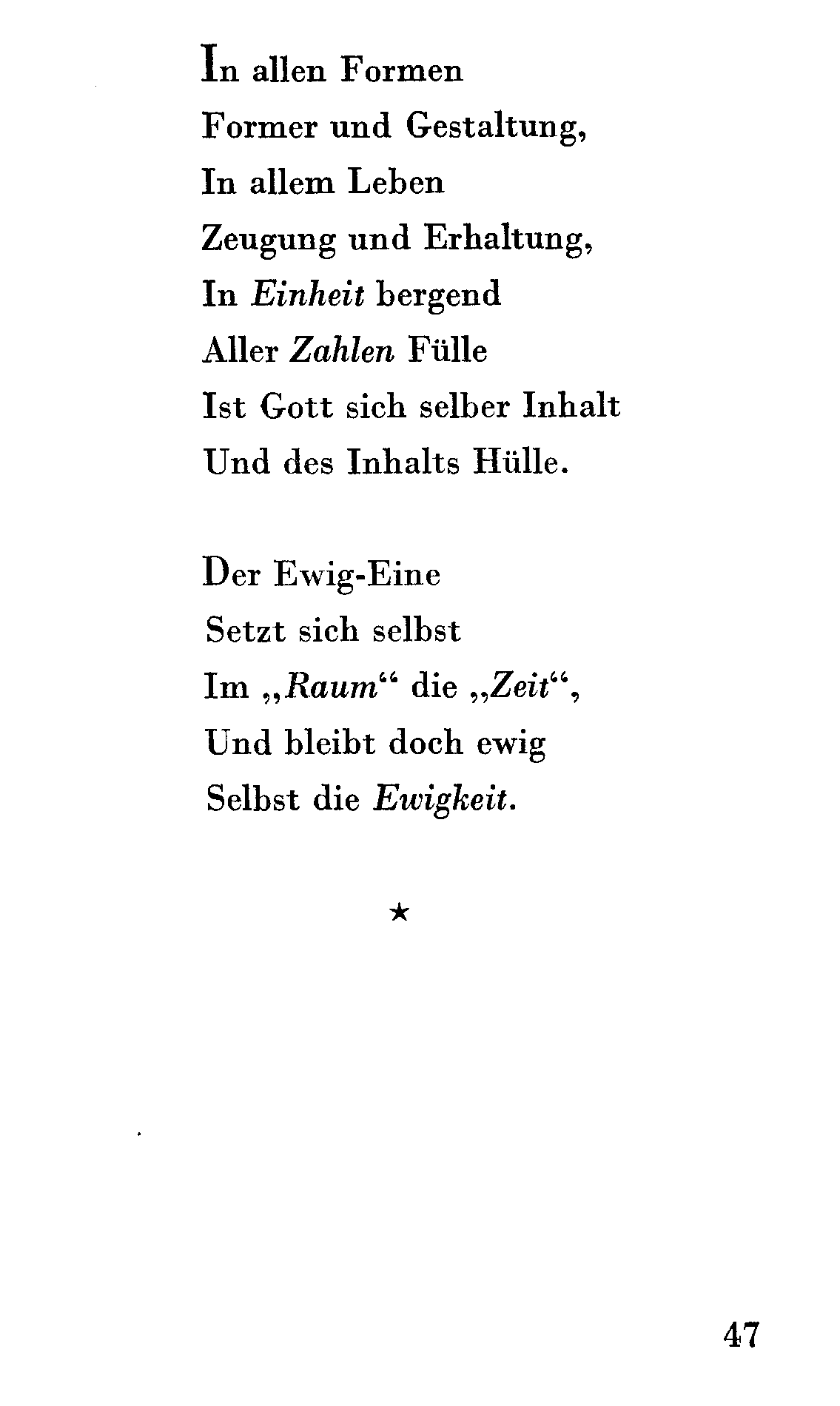 So wie ich, das Ewige, Unendliche