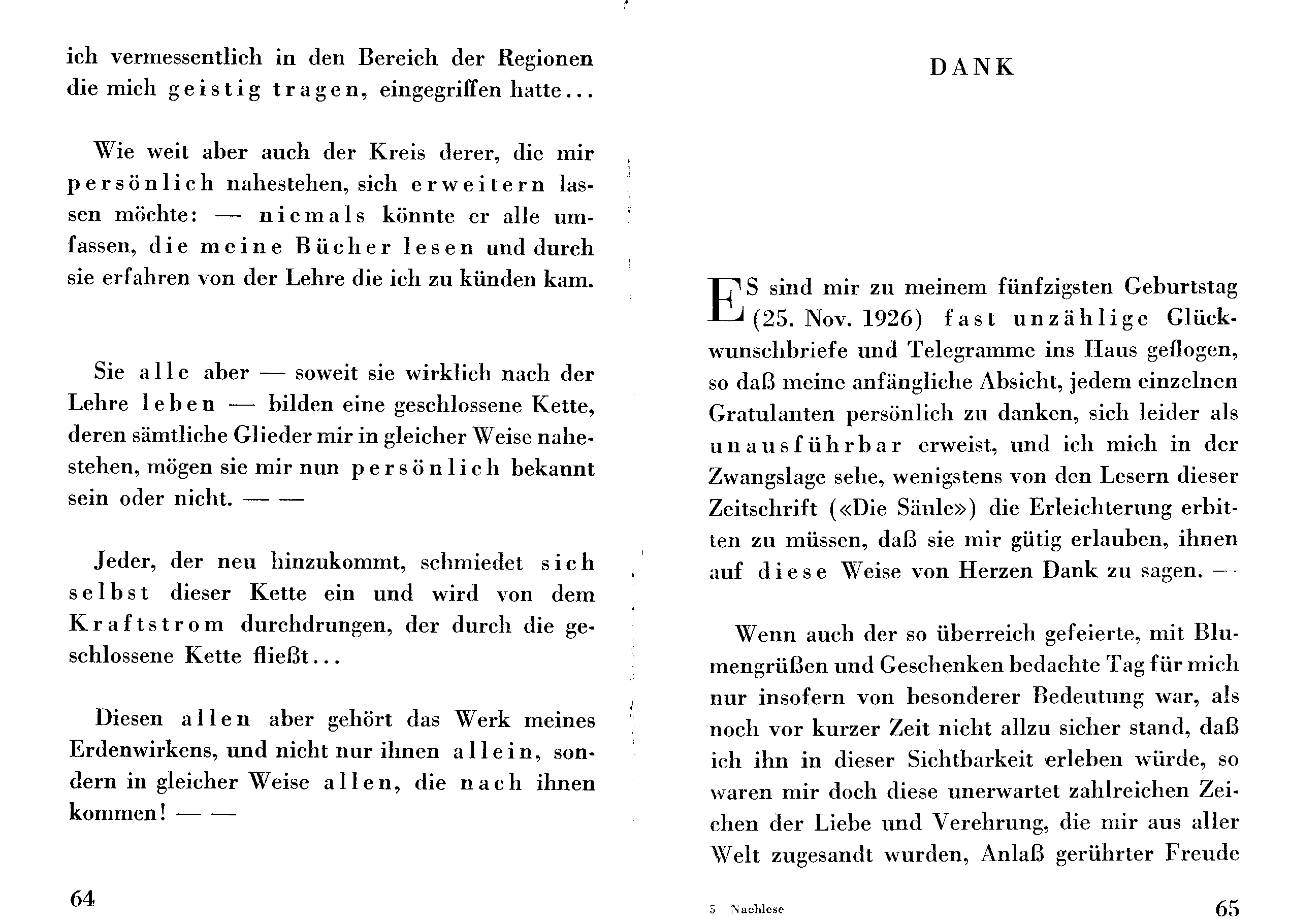 das Kapitel „Dank” in den zweiten Band wechselte.