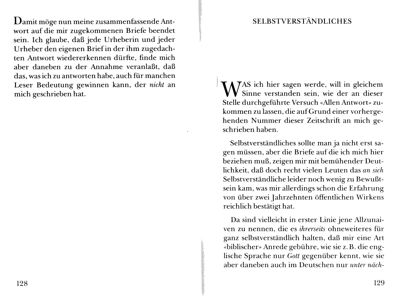 entspricht, in welcher die Kapitel „Jedem Antwort” und „Selbstverständliches”